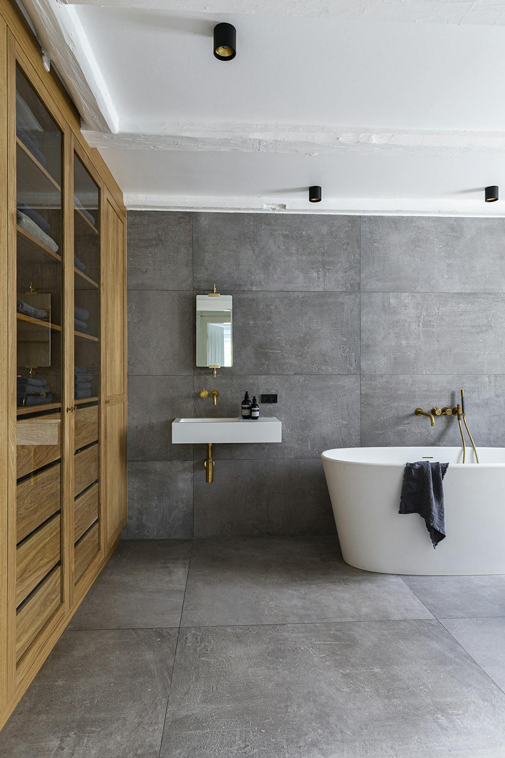 Ten noorden van Kopenhagen maakte de familie Ene Wichmann een ruime badkamer in de kelder. De strakke lijnen en rustieke oppervlakken en de gouden gloed van het hout doen denken aan een luxe hotel. En de ruimte is niet alleen mooi, maar ook praktisch.