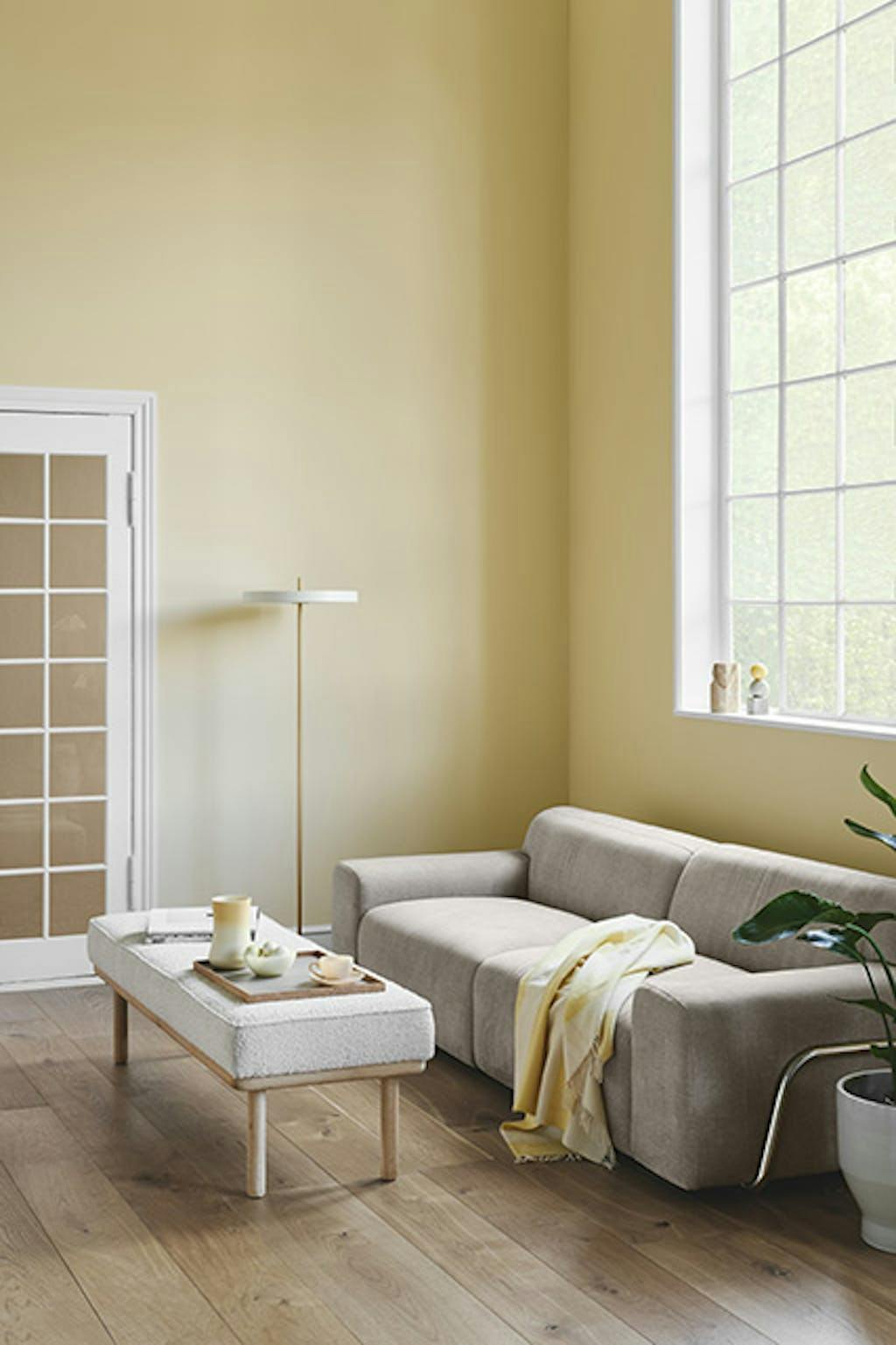 Een beige tint voor de gele kant, die volgens het bedrijf zelf gekozen is, omdat deze licht is, maar niet te fris. Het helpt om het licht in de kamer binnen te laten en te versterken zonder al te veel lawaai te maken.