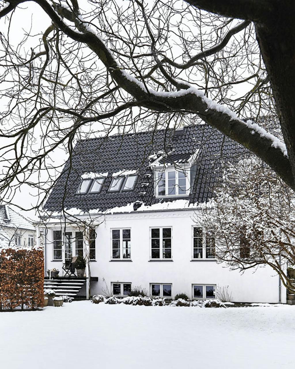 In de besneeuwde tuin ligt een witte villa die bijna volledig opgaat in het winterlandschap. Terwijl buiten de sneeuw neerdwarrelt, brandt binnen de houtkachel. In deze sprookjesachtige sfeer nemen we een kijkje in het stijlvolle huis waar Katja Falkenberg, haar man Lars en hun twee kinderen wonen.