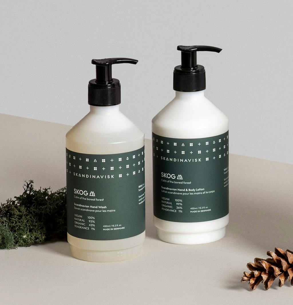 De set komt uit de serie SKOG, die geïnspireerd is op de Scandinavische bossen en natuurlijke geurnoten van dennennaalden, dennenappels en berkensap bevat.