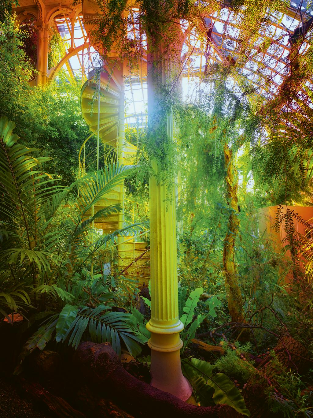 Het was een behoorlijke uitdaging voor de fotograaf om het beeld te vast te leggen vanwege de hoge luchtvochtigheid en dampende temperaturen. Pawlok toont in dit omvangrijke boek met zijn fotografie dat de 19e-eeuwse architectuur en de botanische setting enorm vernieuwend waren voor die tijd. Het waren ‘handmade gardens of Eden’, zoals bijvoorbeeld de uitbundige Koninklijke serres van Luiken in Brussel, ontworpen in 1873. Deze kas is slechts één keer per jaar een aantal weken geopend voor het publiek. In Greenhouses staan ook minder bekende pareltjes, zoals Botanic Garden Benmore in Schotland of Palm House Botanical Garden Lednice in Tsjechië.