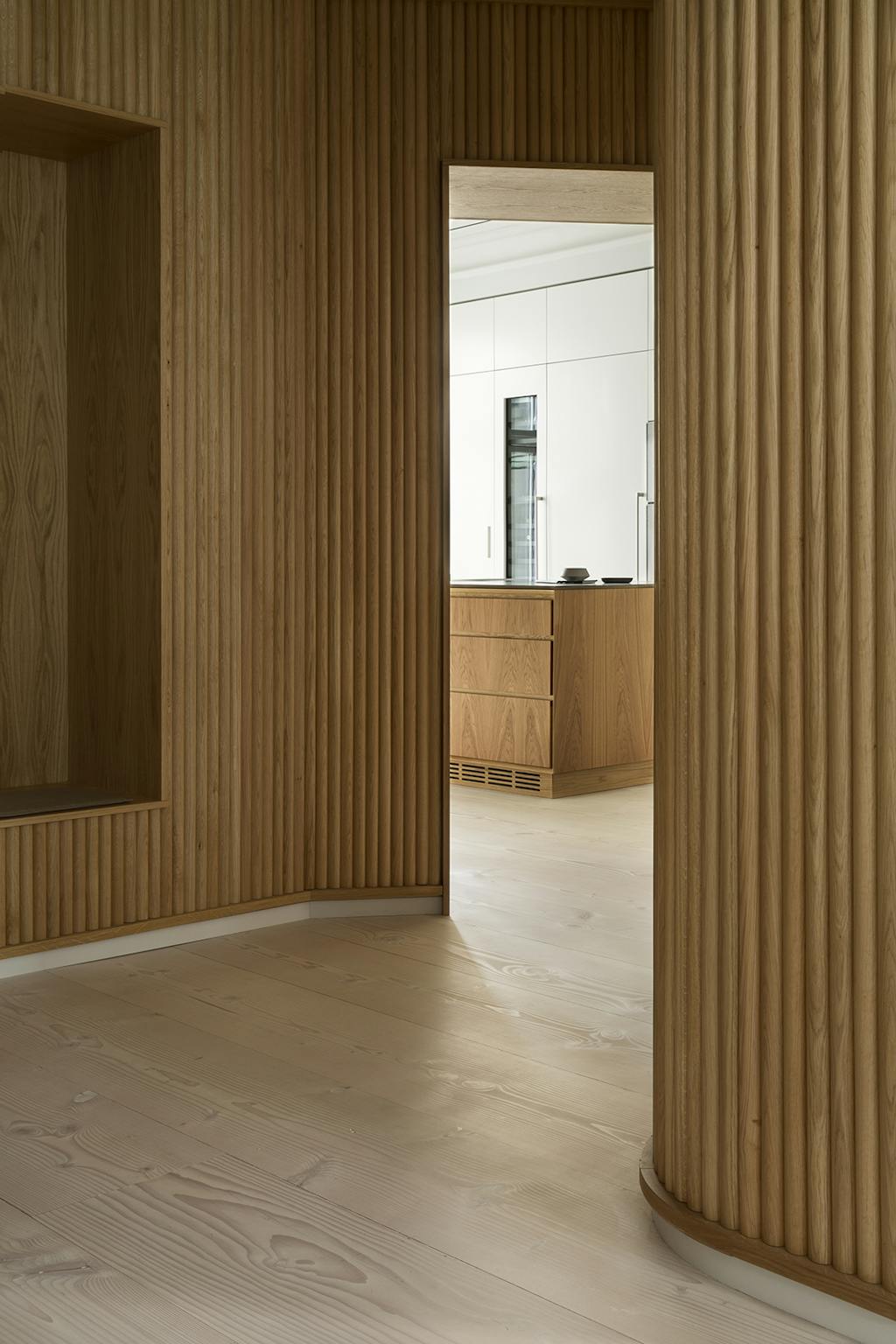 DoorWarm hout, lichte oppervlakken en vakmanschap zijn de belangrijkste kenmerken van het tijdloze en totaal gerenoveerde appartement van Aram Zarkoob Vaughan en Mark Vaughan in Oslo. Doordat deuren en drempels ontbreken, is de overgang van de entree naar de verschillende kamers soepel en natuurlijk. De ronde muren creëren een visuele, bijna organische spanning en zorgen er tegelijkertijd voor dat het daglicht alle uithoeken van de woning kan bereiken.
