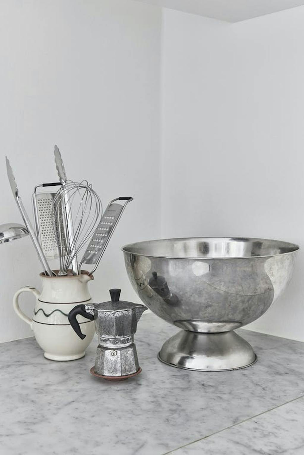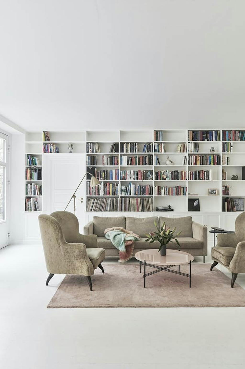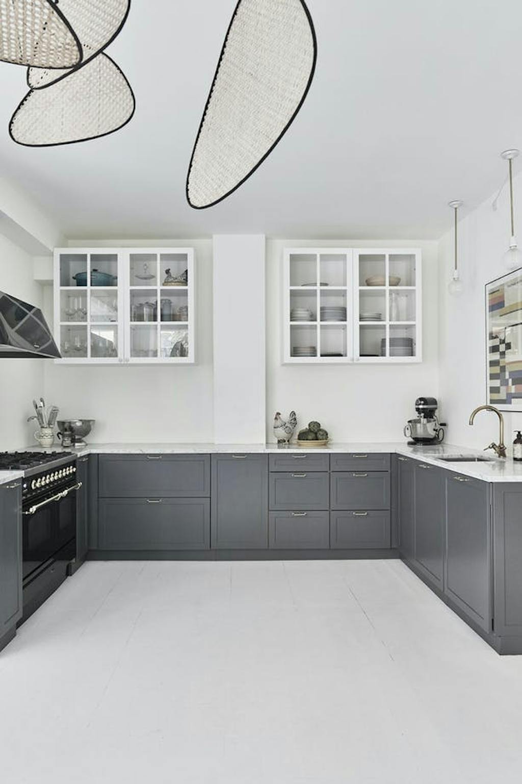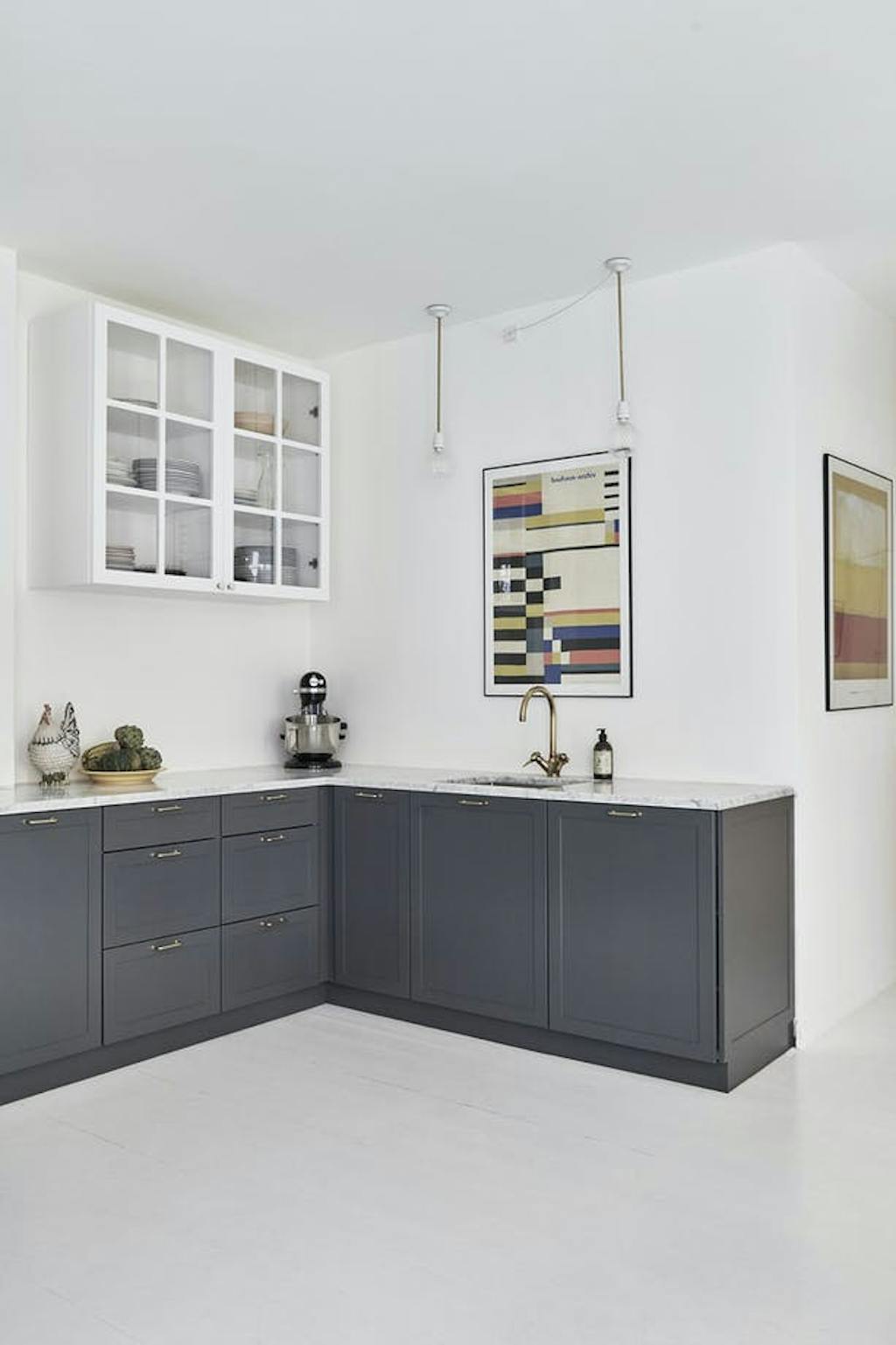 DoorIn het huis van Kasper en Signe mag je zien dat er geleefd wordt. De geloogde boerentafel komt van een vlooienmarkt en de Thonet-stoelen zijn gekocht bij de lokale woonwinkel Beau Marché, waar ook de rieten lamp en de tafellamp Petit Machine vandaan komen. Het bloemenschilderij van Yelva Vermehren uit begin 20e eeuw krijgt iets moderns doordat er veel ruimte omheen zit en gaat een samenspel aan met de spiegel van Gio Ponti uit 1933.