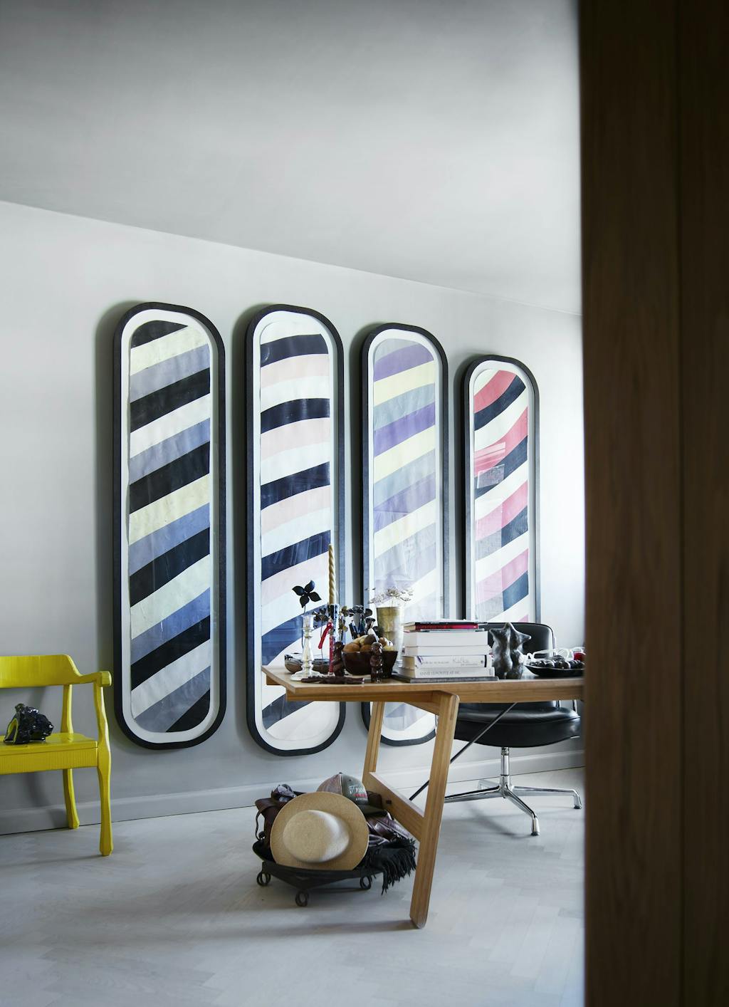 – Ik geef graag toe dat een kunstwerk, behalve dat het me natuurlijk moet aanspreken en ik er verliefd op moet worden, ook een onderdeel is van de inrichting. Neem nou het werk van Kørner. Dat is het eerste wat je ziet als je mijn huis binnenkomt, en het zet meteen de toon. De wand is groot en daarom heeft het werk ook een bepaald formaat. Als je er met je hand overheen gaat, dan voel je dat het met maar één laag verf is geschilderd. Hij heeft het werk dus in één keer opgezet.
