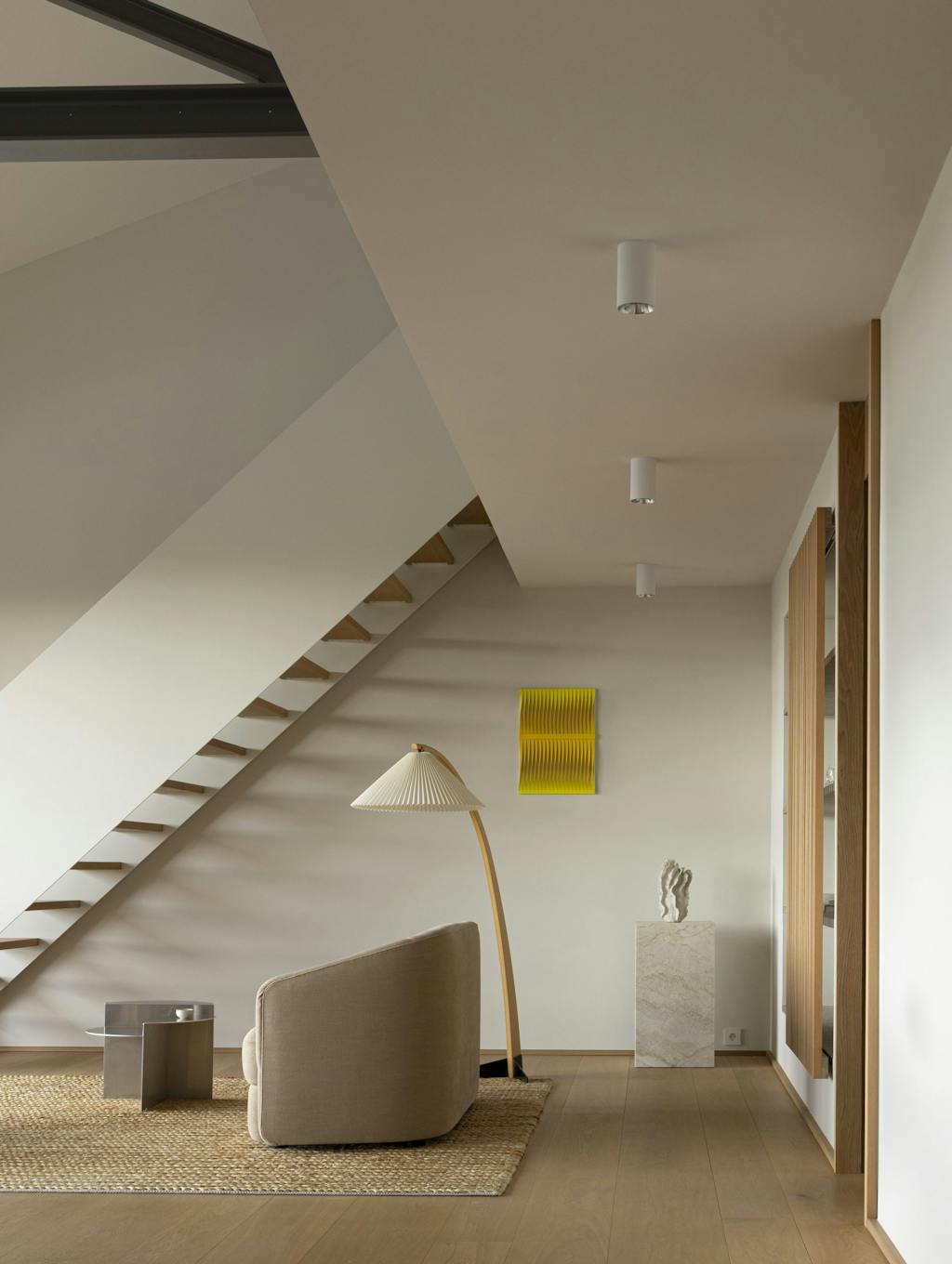 Dankzij de doordachte aanpak voelt het interieur van dit appartement nog steeds geïntegreerd in de omgeving. Het verleden en heden bestaan hier in harmonie naast elkaar en bieden een rustig toevluchtsoord te midden van de dynamische energie van de stad Kopenhagen.