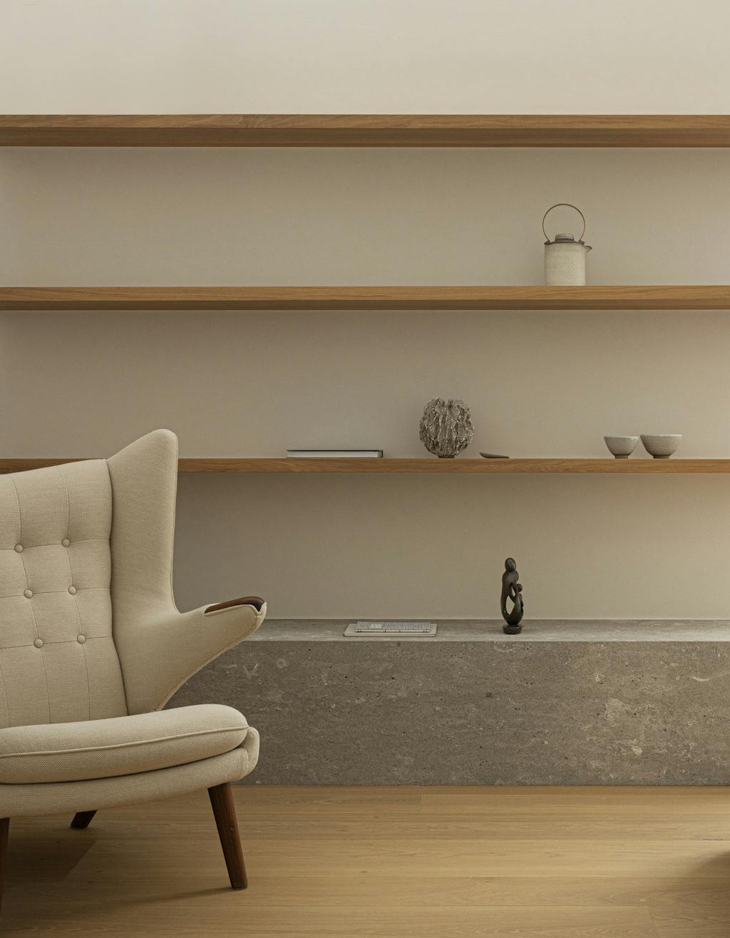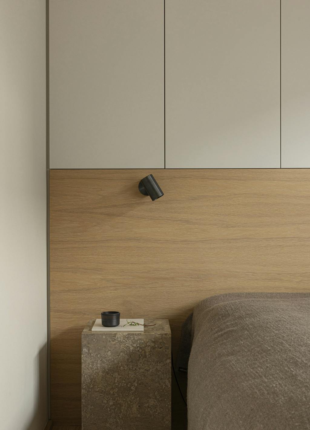 - In dit project hebben we de puurheid van strakke lijnen, geworteld in zowel Scandinavische als Japanse tradities, omarmd. Daarnaast spelen natuurlijke materialen een centrale rol, waardoor elke ruimte een gevoel van tijdloosheid en aarding krijgt. Zacht textiel biedt tactiel comfort dat de sfeer in de ruimte verzacht en verrijkt, legt Peter uit.