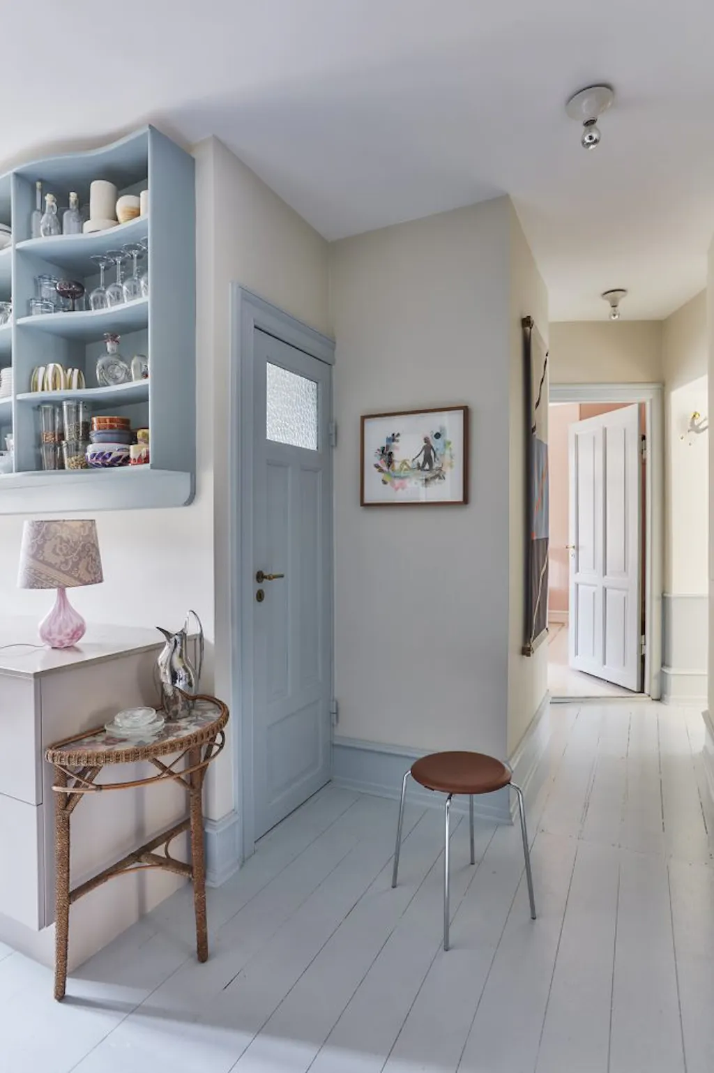 DoorNatalia Sanchez’ appartement in de Kopenhaagse wijk Frederiksberg zit boordevol sfeer, verhalen en indrukken waarin je op ontdekking kunt gaan. Het is inspirerend. Je wilt erover praten. Er wordt iets in gang gezet. Het voelt prettig, zintuiglijk en toegankelijk, maar je ervaart ook visie en per spec tief. Het creëren van interessante ruimtes is iets waar Natalia meester in is. Doordat het haar van nature ligt en doordat ze interieurdesign heeft gestudeerd in Barcelona, waar het – anders dan in Denemarken – een er ken de universitaire opleiding is op gelijke voet met architectuur.