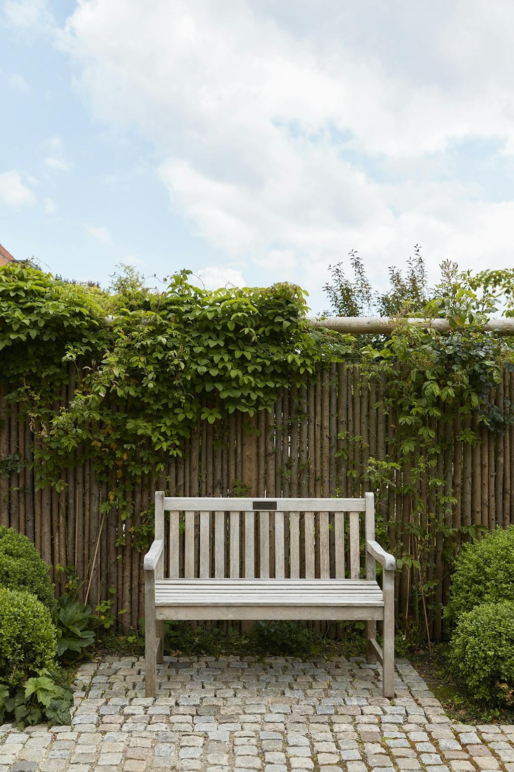 De tuin is zo aangelegd, dat hij het hele jaar door mooi is, met een heleboel wintergroene planten. Het is een tuin waar je niet veel werk aan hebt, maar die bijna uit zichzelf mooi en groen blijft.