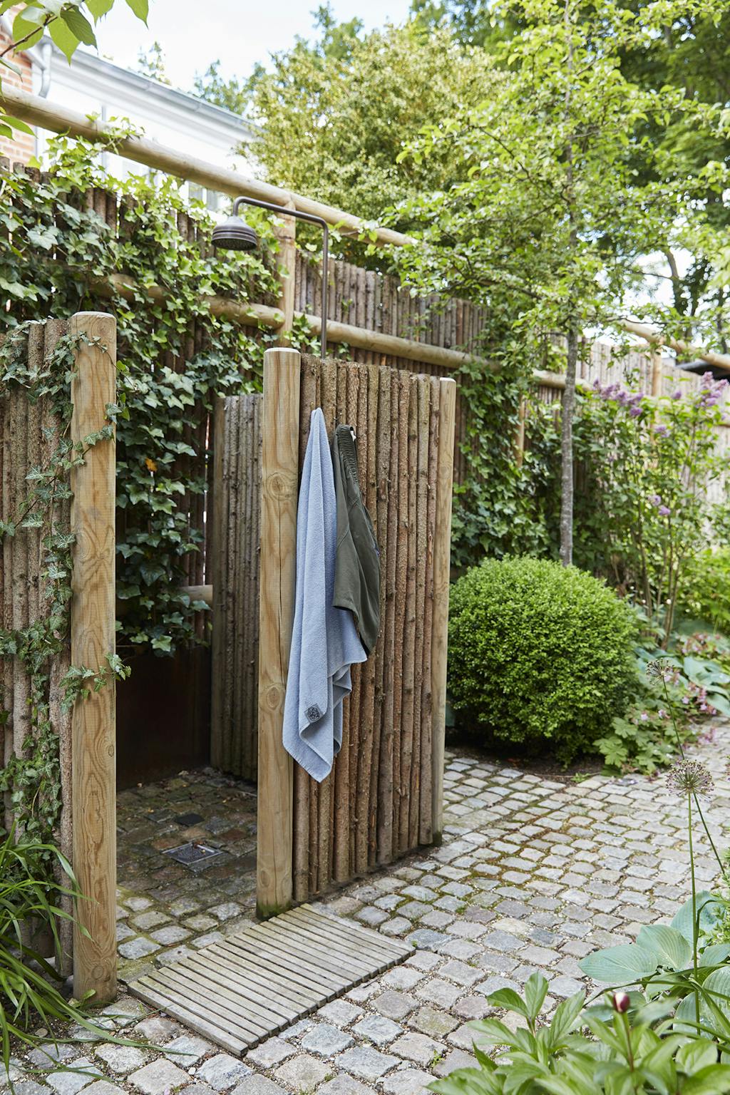 De buitendouche wordt intensief gebruikt in het zomerseizoen.