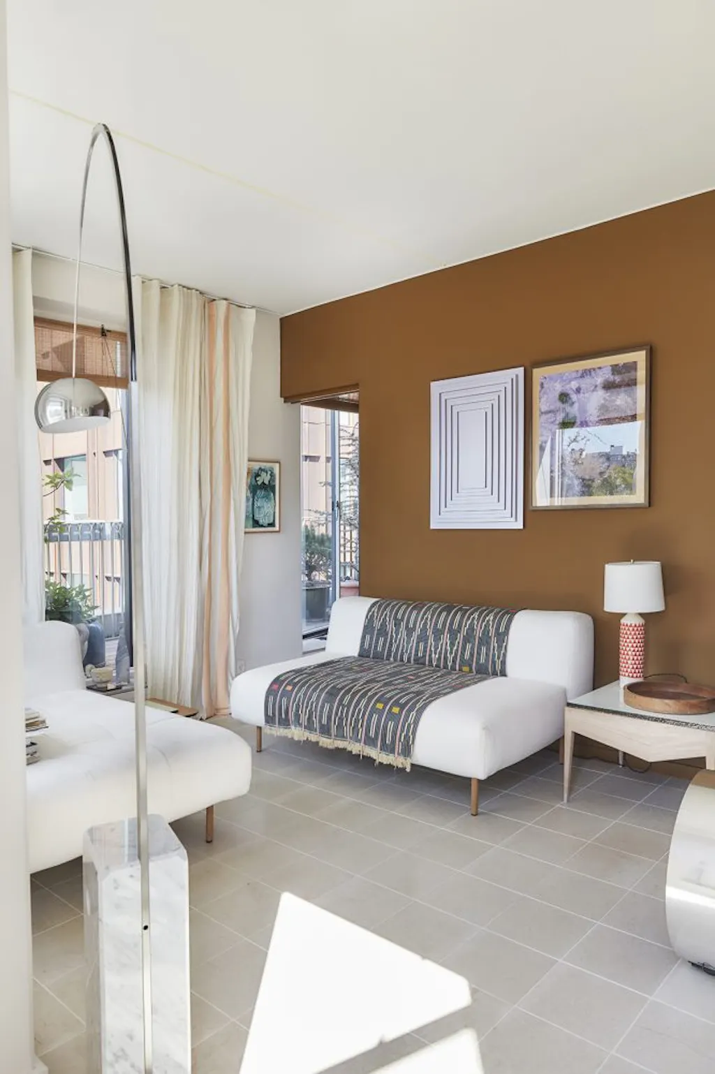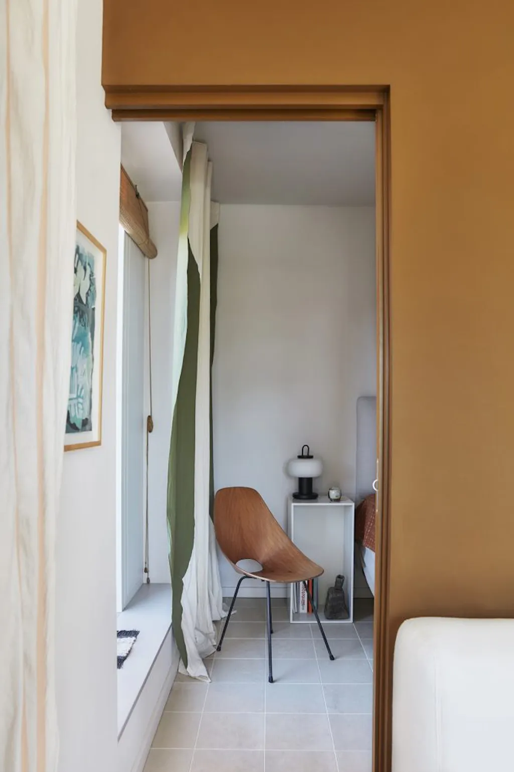 DoorHet licht stroomt naar binnen in het op het zuiden gelegen appartement, waar het zacht landt op tere wandkleuren, wordt gevangen door handbeschilderde gordijnen en een tactiele dans aangaat met kunst en vormen. In dit moderne appartement in het Carlsberg City District in Kopenhagen, met uitzicht op de privétuin van de oude Carlsberg-brouwerij die nu publiek toegankelijk is, vond Josephine Yaa Akuamoa, creative director bij File Under Pop, tot haar eigen verrassing een nieuw thuis en een creatieve uitdaging. Haar man Peter Bur Andersen, die met zijn architectenbureau Briq betrokken was bij de planning van het stadsdeel, stond al veel eerder open voor een verhuizing. ‘Maar ik wilde echt niet. Ik kwam van een mooi, oud appartement aan een pleintje en zag mezelf totaal niet in iets moderns. Het was dan ook een complete verrassing toen ik de woning voor het eerst binnenliep en uitkeek over de zeldzame sierlijke bomen die de brouwer zelf heeft meegenomen. Ik was gebiologeerd,’ vertelt Josephine.