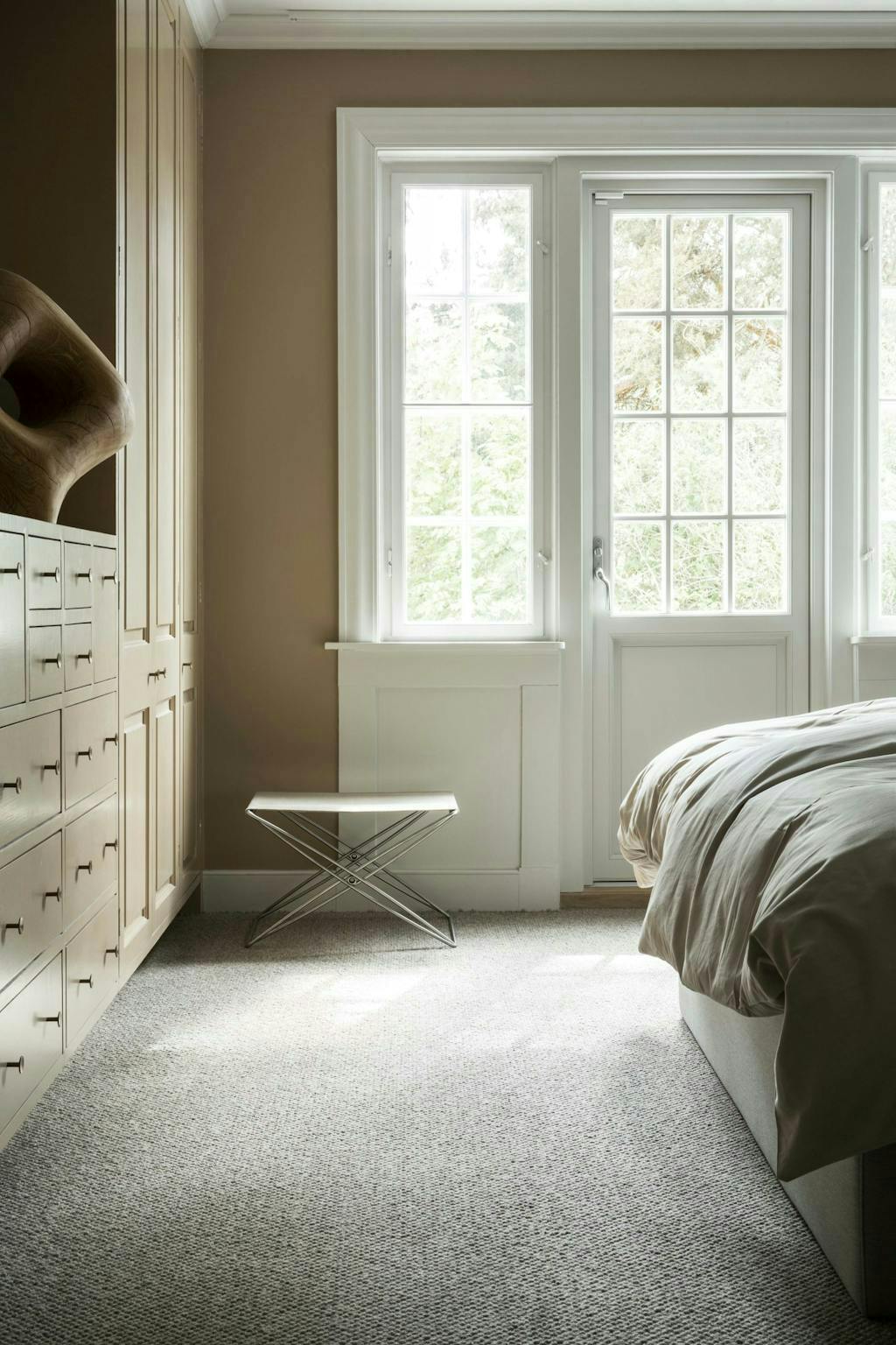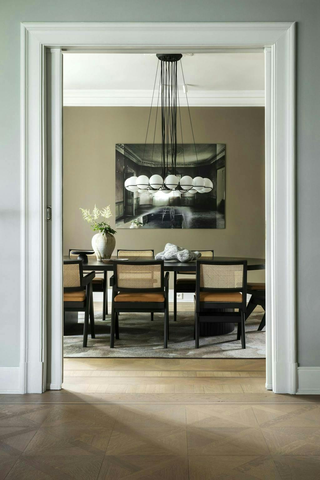 - We hebben geen energie gestoken in het aanpassen van de indeling, maar alleen elk vertrek een duidelijke functie toebedeeld. Daarvoor hebben we meubilair, materialen, verlichting en kleur heel bewust ingezet. Omdat de voorgevel van het huis een monumentale status heeft, wilden we binnen ook zo veel mogelijk historische details behouden. Dat hielden we in ons achterhoofd als intentie, zonder dat het het werk dicteerde, vertelt Fredrik.