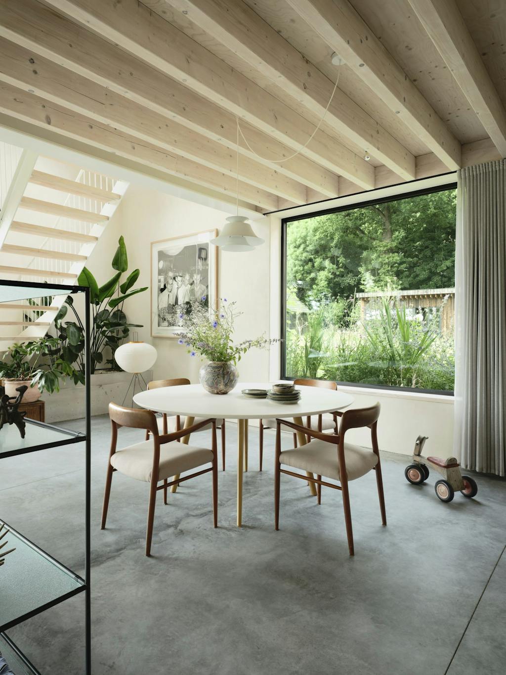 - Jolijn en ik werken in de stad, dus die korte afstand is heel fijn. Tegelijk zijn we hier echt buiten. Ik ben een vogelliefhebber en vind het heerlijk om zo dicht bij de stad te wonen en toch meer dan 50 vogelsoorten te kunnen zien in mijn eigen tuin. Iedereen heeft zijn eigen woning, maar we delen een aantal gezamenlijke ruimtes en hebben ook een gemeenschappelijk huis, dat perfect is voor familiebezoek of ons jaarlijkse kerstfeest. We delen ook twee grote schuren, de kelder en de tuin – die is zo groot dat hij eigenlijk nooit vol aanvoelt. We hebben een fruittuin, een moestuin en twee grote weilanden, en de kinderen kunnen in het bos spelen.