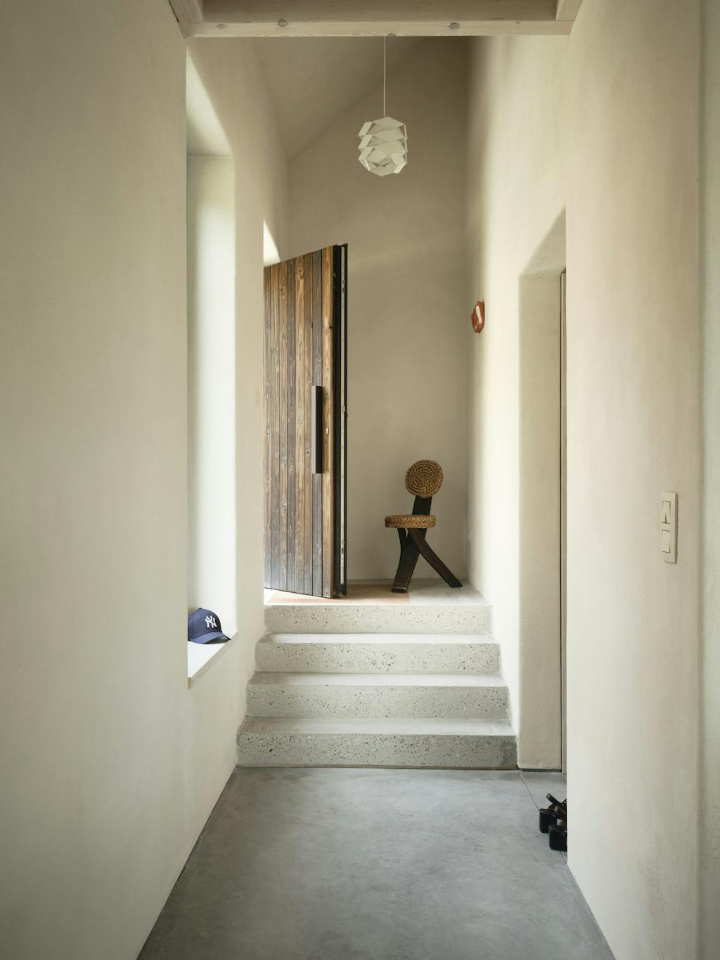 Vanbinnen zijn de wanden niet geverfd, maar is een leemfinish gebruikt.