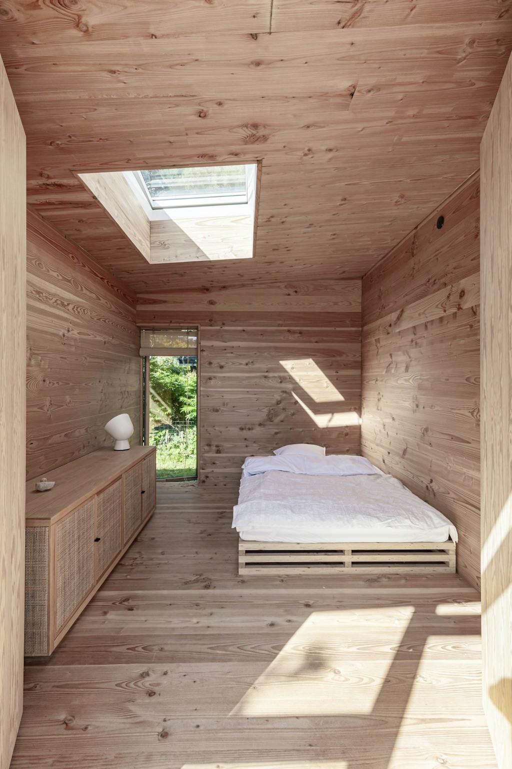 DoorDe zon werpt diagonale schaduwen over de houten vloer en verwarmt de steen die, zoals in Japanse huizen, fungeert als overgang tussen twee niveaus. De warme, prettige sfeer en het ongekend gedetailleerde houtwerk lijken op geen enkele manier te verwijzen naar een prefabwoning, maar toch is dat het woord dat architect Julie Reinau steeds weer gebruikt om het huis te beschrijven dat ze samen met haar man en partner, Mads Reinau, de afgelopen tien jaar heeft ontwikkeld.