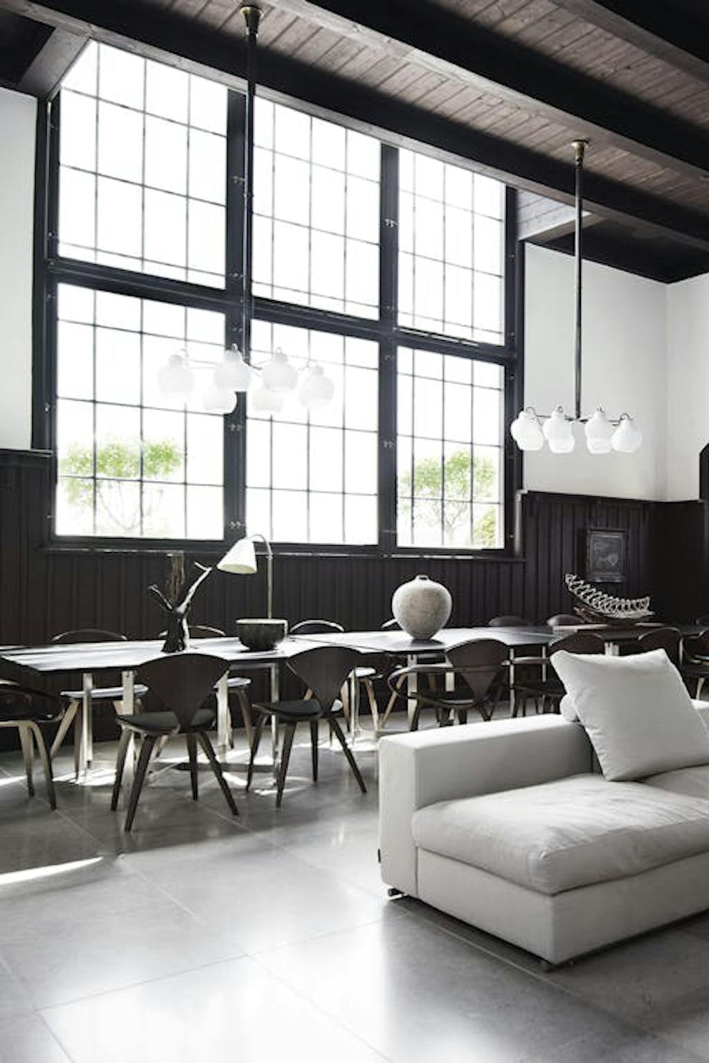 Emil maakte zelf het ontwerp en de indeling van het huis en heeft het samen met zijn zakenpartner Line Hindsgaul van Thorup Rohde Studio ingericht. Ze hebben er echt één geheel van gemaakt, onder meer met een vloer die lijkt op beton, maar toch comfortabel aanvoelt, als linoleum.