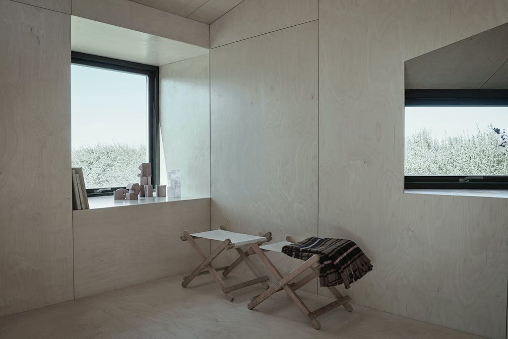 'Het overkoepelende idee was dat het een aantal praktische doeleinden moest dienen. In de eerste plaats moest het een of meer extra slaapplaatsen kunnen bieden en verder als een tweede verblijfsruimte fungeren, een ruimte waar de natuur van doorslaggevend belang is en waar men zich uit de wereld kan terugtrekken en zichzelf kan zijn. Vervolgens ontstond de gedachte over de grote zitnis met uitzicht over de tuin en het aparte raam aan de zijkant van het bijgebouw, waar je vanuit je bed naar buiten kunt kijken met uitzicht over de aangrenzende velden en het strand en de zee, vertelt architect Martin Kallesø.
