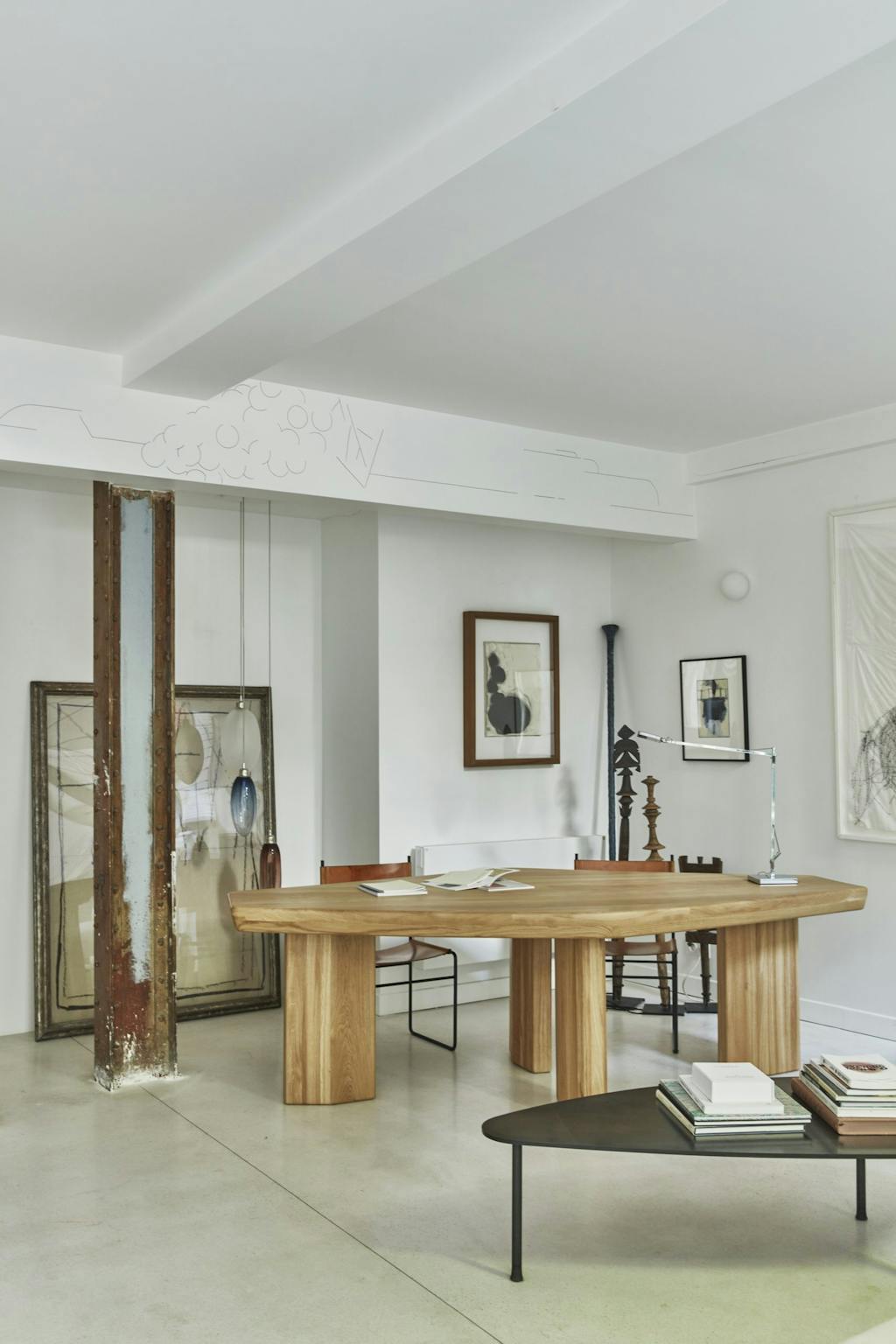 - Ik vind dat de warmte en zachtheid van de natuurlijke materialen zorgen voor harmonie. Daarbij zijn ze neutraal en hebben ze een textuur die perfect bij de kunstwerken past, legt Amélie uit.
